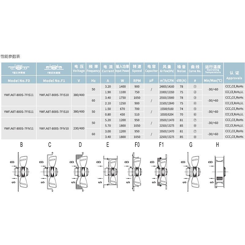 YWF.A6T-800S-7FIS10全新三木馬爾微光外轉子軸流風機