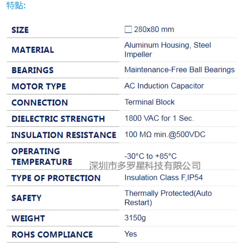 臺灣達盈風機AC軸流風機系列(全金屬耐高溫風機)(具體規格參數請咨詢客戶)