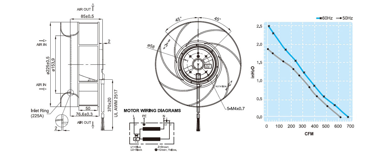 原裝臺灣FULLTECH福佑UF225(85)離心風機節能新風機通風設備風機